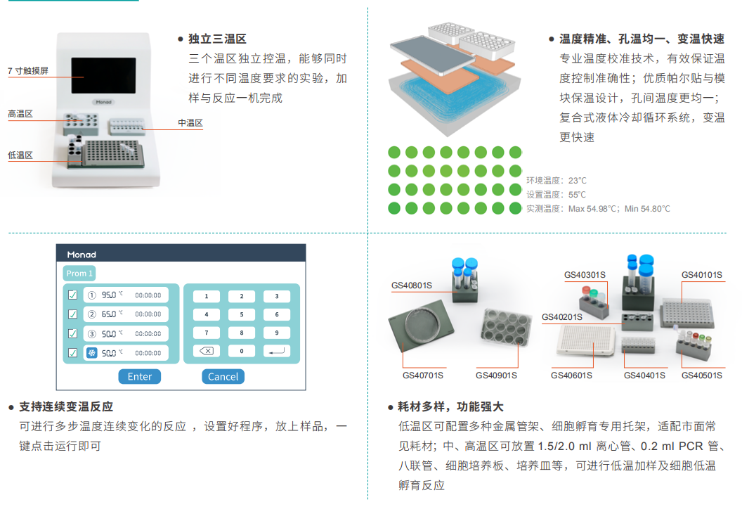 ● 中溫區(qū):可設置溫度范圍為 8~99.9℃,用于試劑樣品的解凍、酶切實驗、熱激反應及逆轉錄類連續(xù)變溫反應等 。