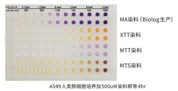 BIOLOG專利開發(fā)的MA/MB/MC染料,與傳統(tǒng)的細(xì)胞染料XTT、MTT和MTS相比,具有背景顏色干擾小、靈敏度更高、線性范圍更寬等特點(diǎn),是PMM平臺最核心技術(shù)之一。